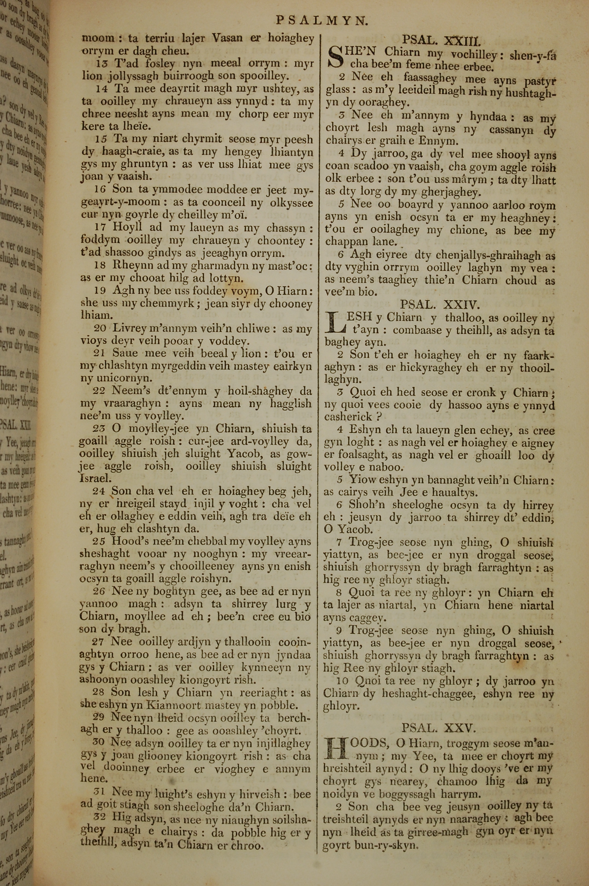 1819年曼島語聖經 詩篇 22 章 13 節到 25 章 2 節